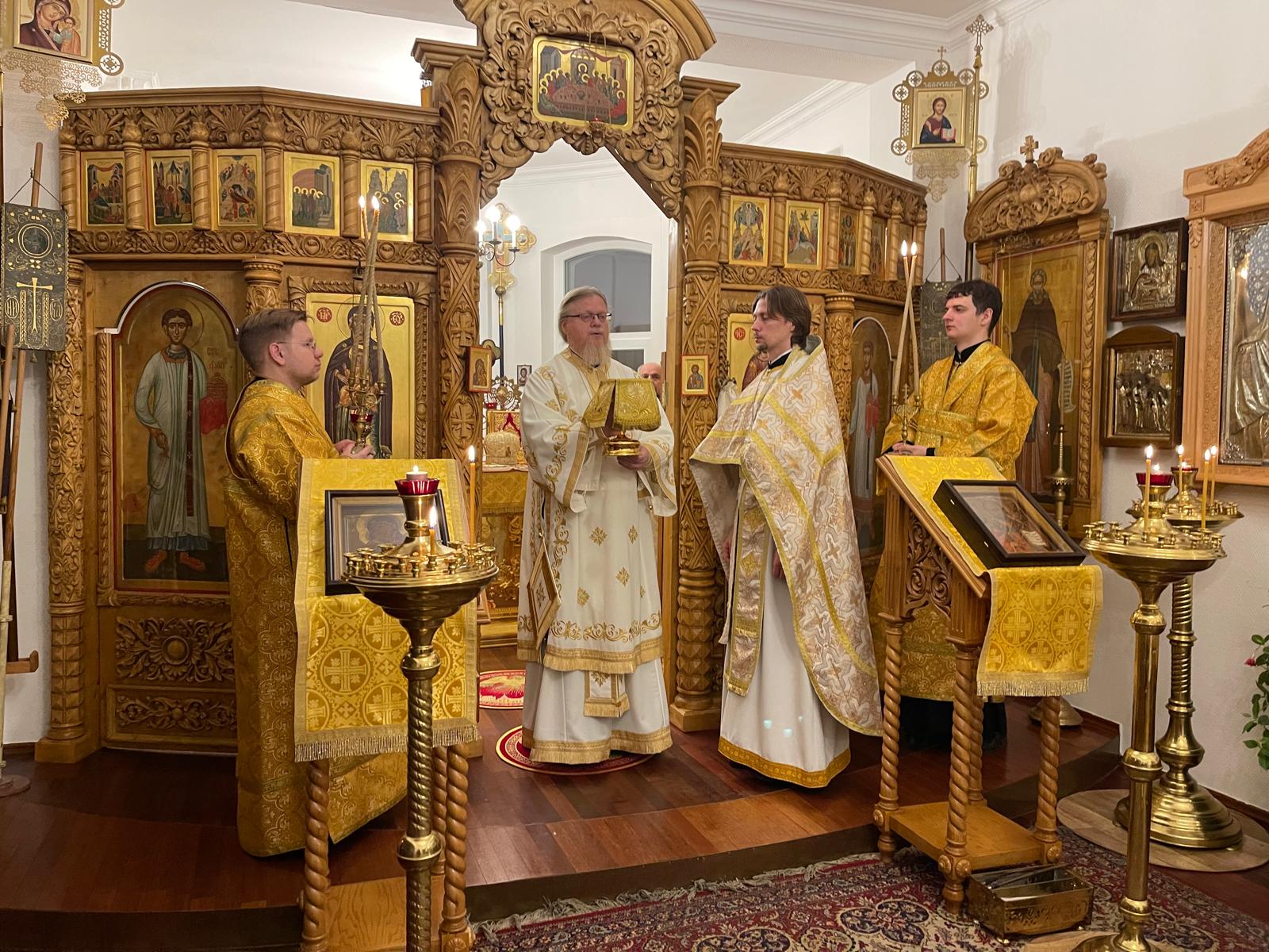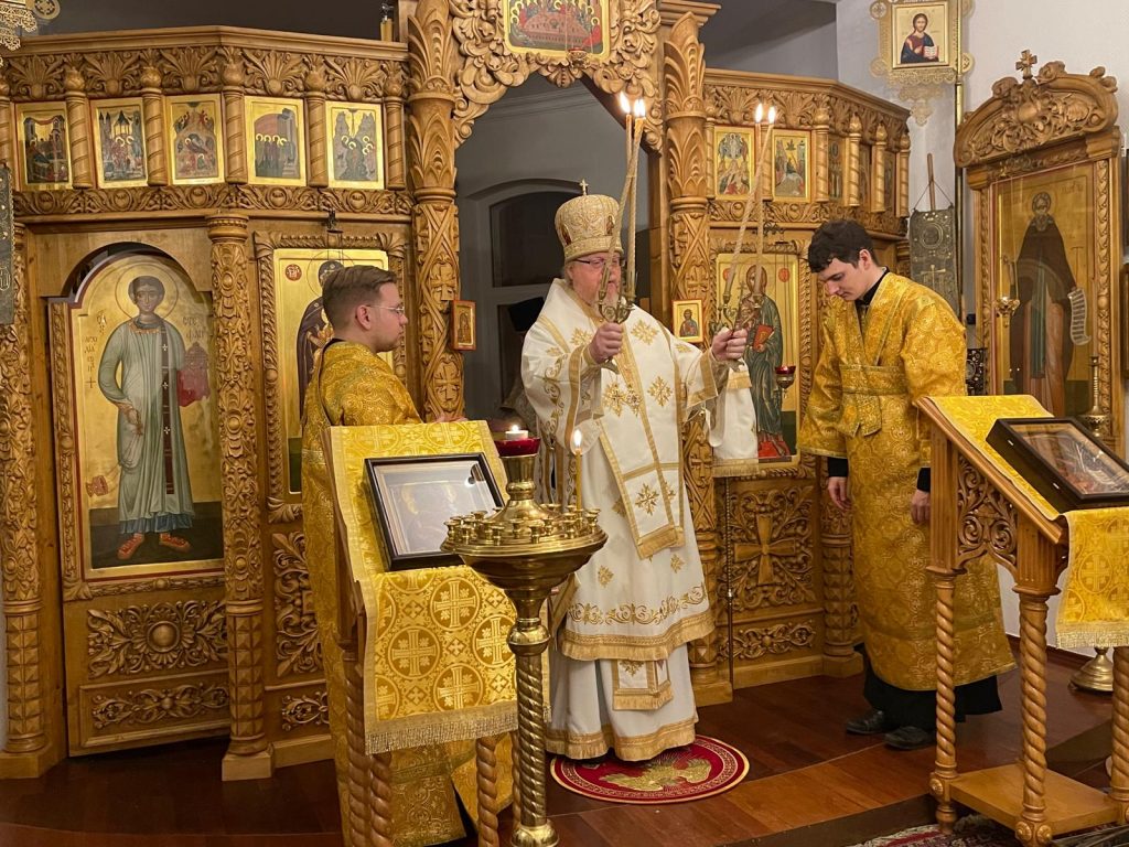 Архипастырю сослужили иерей Олег Бельтек и протодиакон Виталий Садаков.